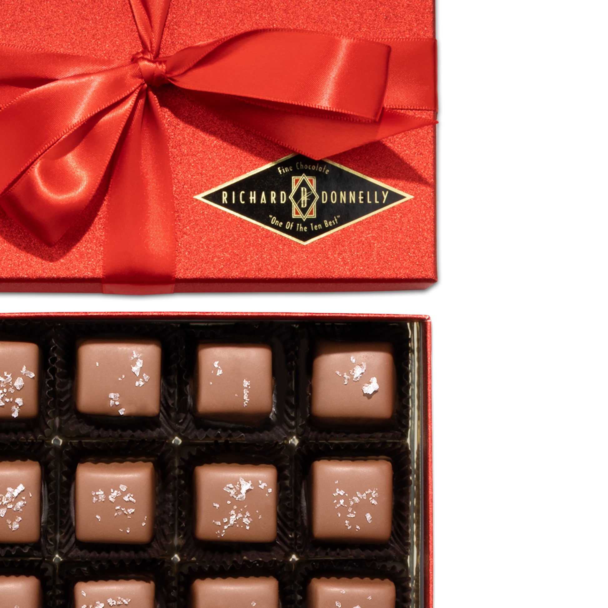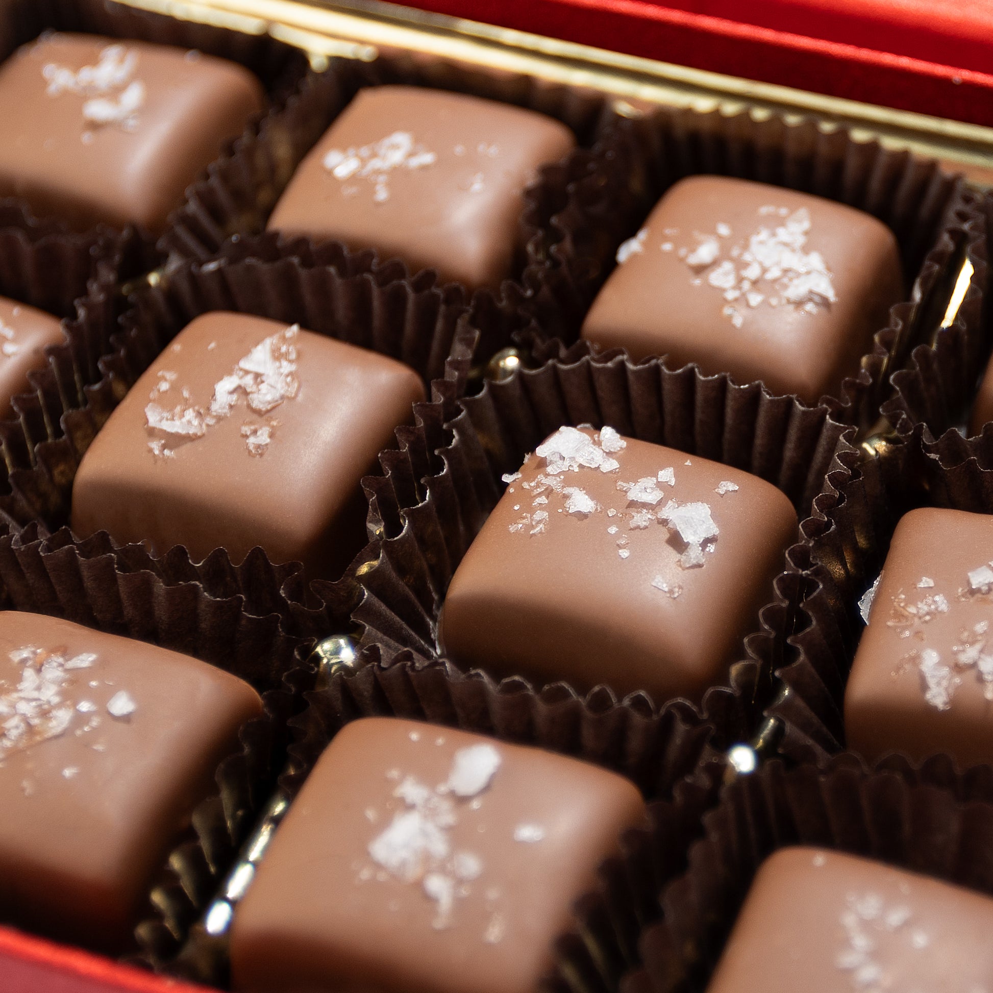 Our 12 Piece Milk Chocolate Sea Salt Caramel Gift Box is the perfect way to show someone you care or to indulge yourself in a little everyday luxury. Each bite reveals our signature rich caramel, made by hand in small batches, wrapped in luscious milk chocolate, and sprinkled with sea salt for the perfect finish.